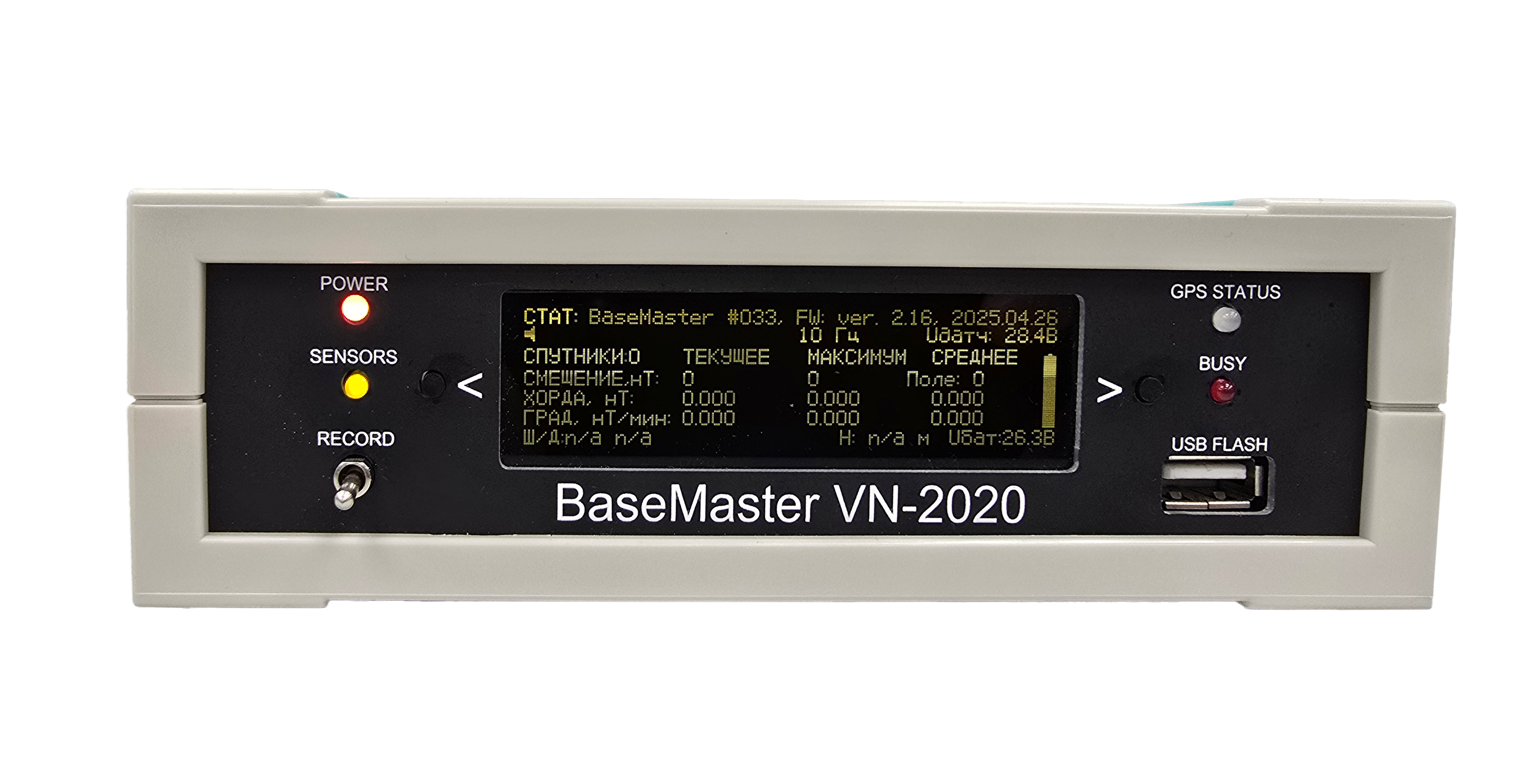 Basemaster – это прибор, предназначенный для высокоточного измерения модуля вектора магнитной индукции на вариационных станциях во время выполнения магниторазведочных работ. Basemaster может выполнять функции не только магнитометра, но и мобильной базовой навигационной станции для дифференциальной коррекции координат (в прибор встроен процессорный блок с платой ГНСС-приемника). После подключения специальной антенны и вычисления станцией своего точного положения, данные ГНСС-приемника можно использовать для повышения точности координатной привязки аэрогеофизических измерений.